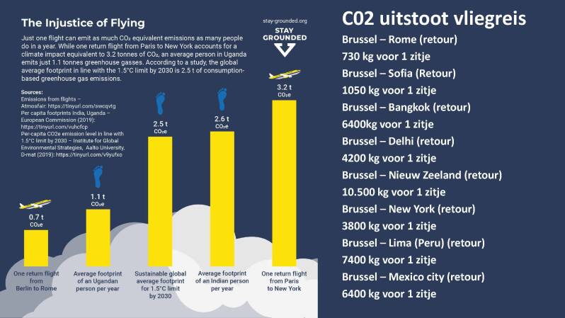 - Een retourtje Brussel–New York meer dan 3000 kg CO₂.
